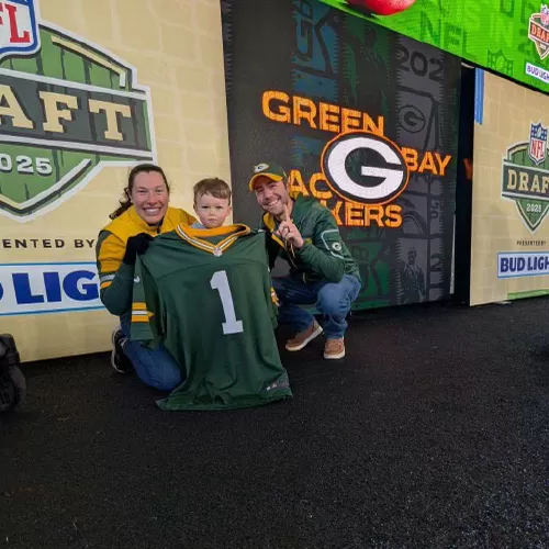 Stephanie, Mitch, and Carson at the NFL draft in Green Bay